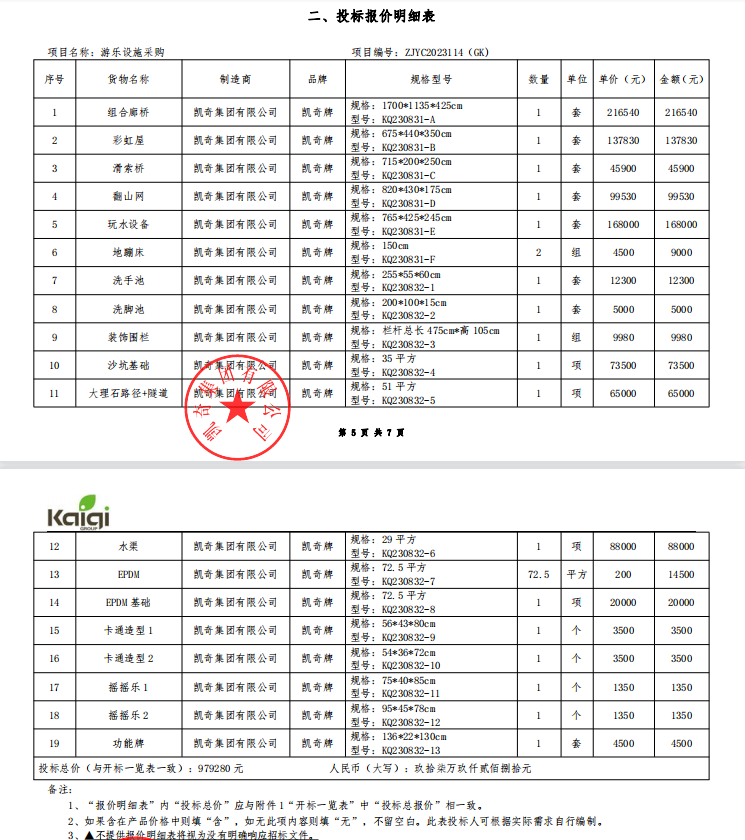 | 1 | 游乐设施采购 | 游乐设施采购 | 详见附件清单 | 1批 | 979280 | 详见附件清单 |