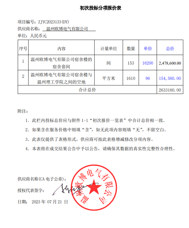 | 1 | 报价:2633160(元) | 温州欧博电气有限公司 | 浙江省温州市经济技术开发区金海二道425号 |