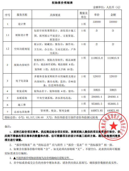 | 1 | 温州市“松台别业”展陈项目 | 温州市“松台别业”展陈项目 | 详见磋商文件 | 详见磋商文件 | 详见磋商文件 | 详见磋商文件 |